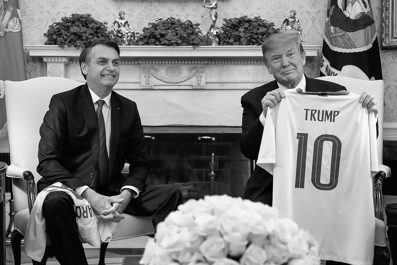 Imagen / Trump y Bolsonaro intercambian camisetas. Fuente: Wikimedia.