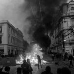 Las mujeres por la vida en esta imagen frente a la Catedral de Santiago, recogida por Lorenzini, muestra la política enmarcada en una agonía trágica. Un colectivo de mujeres en duelo expone el drama de su pérdida, su aflicción y su tesón en la política para reivindicar el duelo como un acto de rebelión, como lo dice Butler, “Antígona rechaza obedecer cualquier ley que no reconozca públicamente su pérdida”[3]. La imagen es un acierto, un coro de mujeres de negro enmarcadas entre las columnatas del pórtico de la catedral ofrecen su resistencia ante una autoridad que ha tratado diferencialmente las muertes perpetradas por el poder. El drama de Antígona y su transversalidad es que esas vidas no lloradas son expulsadas de los reductos de lo humano, son vidas sacrificadas, Butler dice que las vidas de esas personas “están hech[a]s para soportar la carga del hambre, del infraempleo, de la desemancipación jurídica y de la exposición diferencial a la violencia y a la muerte” [4]. El trabajo del duelo implica la renovación de la comunidad política en la esfera de lo común y lo vulnerable, esa condición se transforma en un bastión y una plataforma de una red de mujeres de diversas clases sociales, edades y credos políticos que se enfrentan a la esfera monolítica del poder. La activación de esas mujeres en clave de activismo colectivo y popular promueve una reivindicación de la vida en común, el reconocimiento de la pérdida y la politización de esa experiencia que hoy se traduce en otras consignas como ni una menos.