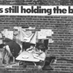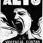 Mujeres con las bocas tapadas para hacer una protesta de silencio contra la censura, la persecución y el exilio. Mujeres haciendo un corro de esperanza en un mitin, donde la reunión de los cuerpos desafía los bandos de la prohibición de asamblea y muestra a esas mujeres en una alianza política activa. Sus cuerpos en un círculo son un fuego de esperanza, un ruedo en un ágora feminista, un coro ciudadano contra los bandos del poder. La fotografía es un recuerdo vivo de reuniones por la reivindicación de una ciudadanía proscrita por ser políticas, por ser mujeres y por ser habitantes de un país, cuya democracia pendía del arbitrio de la razón militar y el estado de excepción. La reunión feminista usa el espacio, los cuerpos, la solidaridad, cobra fuerza y vigencia con la voz colectiva de esas palabras proscritas que desafían la autoridad del Estado, desafían la norma de los silencios impuestos por la virilidad y su autoridad anclada transversalmente en el ámbito social y colectivo.